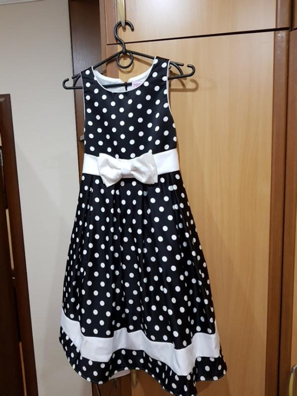 Дуже красиве, ошатне плаття на 8-12 років в ідеальному стані (одягали 1 раз) Є під'юбник для пишноти. Регулюється зав'язуванням банта ззаду. Довжина 86 (має сидіти нижче коліна), ПОГ 32