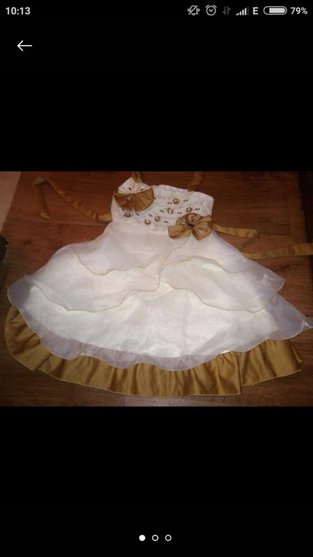 Плаття нарядне на 3-5 років , ззаду на поясі. Попереду камені виглядає дуже багато. Заміри: довжина від бретелей 68, груди 29*2.