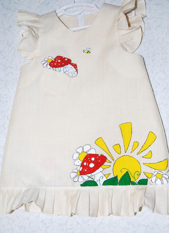 Дитяче платьечки з натурального льону. Ручний розпис, текстильними фарбами. прати при температурі не вище 40°С. Можливі інші фасони і будь-який малюнок, за вашими замірами.