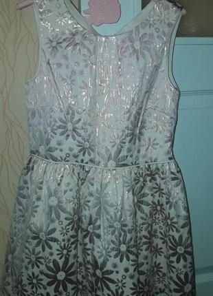 Нарядное платье девочке по бирке на 8-9 лет , жаккаржовый парковый принт,отличное состояние.Смотрится изумительно,можно на торжество Пот 32 см.Длина 68см ,Пог 35см