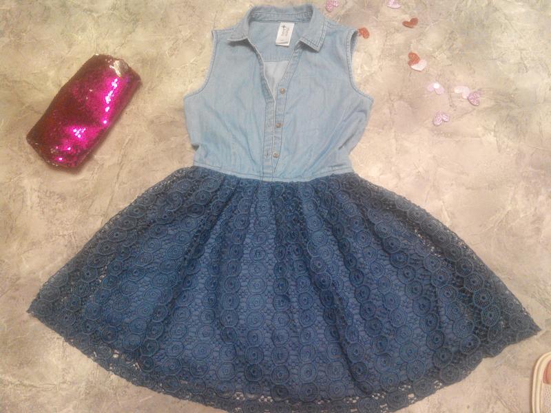 КРАСИВЕ ЛІТНЄ платтячко для модниці ,колір темно синій як на фото 2 ,верх тонкий котон низ на підкладці мереживо,висота 68 см грудей 35 см ,талія 36 см на гумці,висота топа 33 см перед на гудзиках ,на зріст 130-140 см ,в ідеалі без нюансів ,вибірка стоку без запаху,без торгу