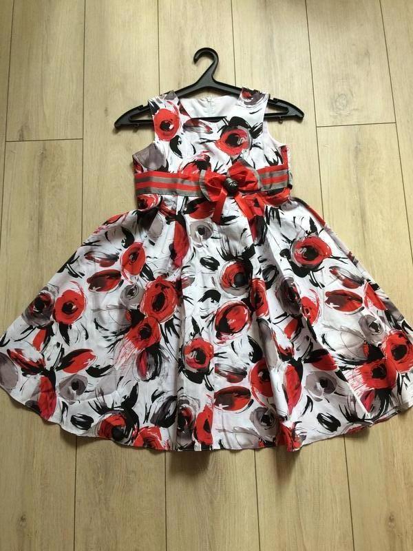 Ошатне плаття. Одягалось один раз на свято. Підійде для дівчинки 140 см і вище. Довжина 85 см, пахви 40 см, по поясу 38см. Не тягнеться.