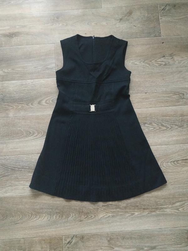 Дуже хороший, якісний сарафан в школу. Попереду пряжка зі стразами, ззаду на блискавці. Довжина 73. На ріст 140