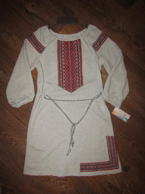 Платье трикотажное вышиванка. В наличии один размер.Замеры по запросу. Примерно на 7-9 лет
