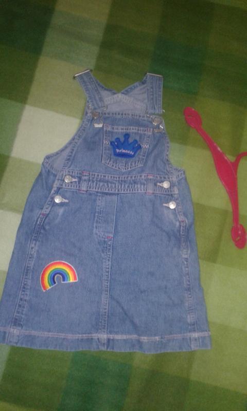 Класний сарафан зденіму Актуальний завжди .Брала на стоку для садочка .Нашивки клеїла сама .Можна зняти .Без них малій не подобалось .В деяких місцях шов зіпсувався (врахувала в ціні) .