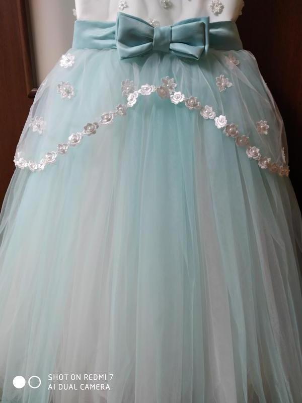 Бірюзове з білим,пишне пояс з бантом.