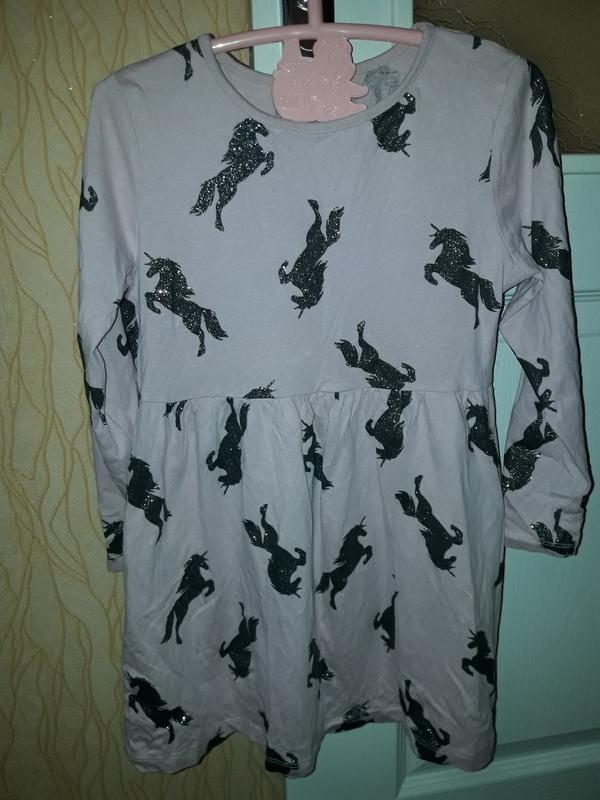 Стильне плаття з принтом блискучі единорожком дівчинці 7 років