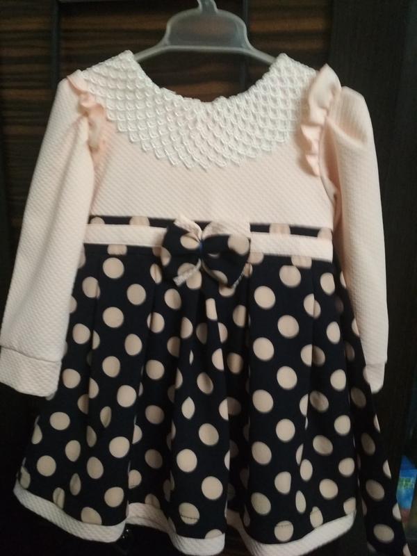 Нарядное платье без дефектов, одето раз на д.р. размер указан 98 , подойдёт с 2-3,5 зависимо от ребенка замеры и фото доп. могу сделать. цвет персиковый, очень нежно и красиво смотрится на талии сзади регулируется пояском , рукав можно подвернуть на спине молния