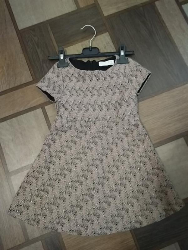 Платтячко для дівчинки від Zara з золотою ниткою,яка красиво блищить . Зсередини є бавовняна підкладка, ззаду замочок.Колір ніжно рожевий,беж і золото.