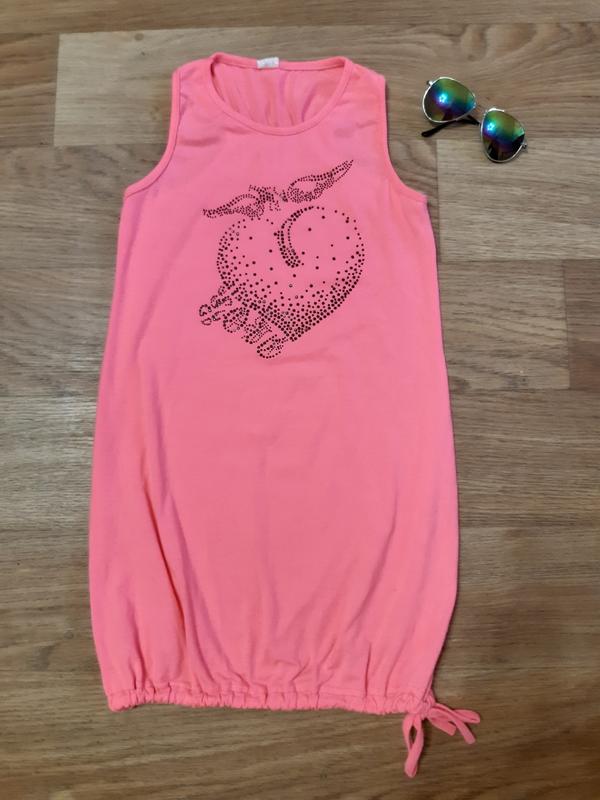 Сукня туніка для дівчинки на ріст 146-152 см Довжина по спинці 72, ширина під пахвами 36, ширина в талії 38. Не вистачає кількох камінчиків. Пересилаю.