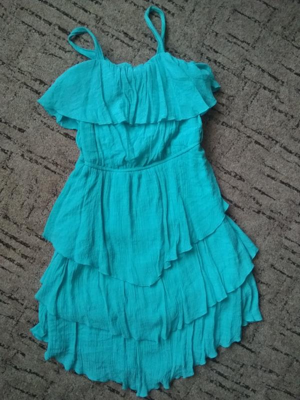 Дуже гарне платтячко бірюзового кольору на вік 10-11 років Довжина від грудей 68см, верх та пояс на гумках