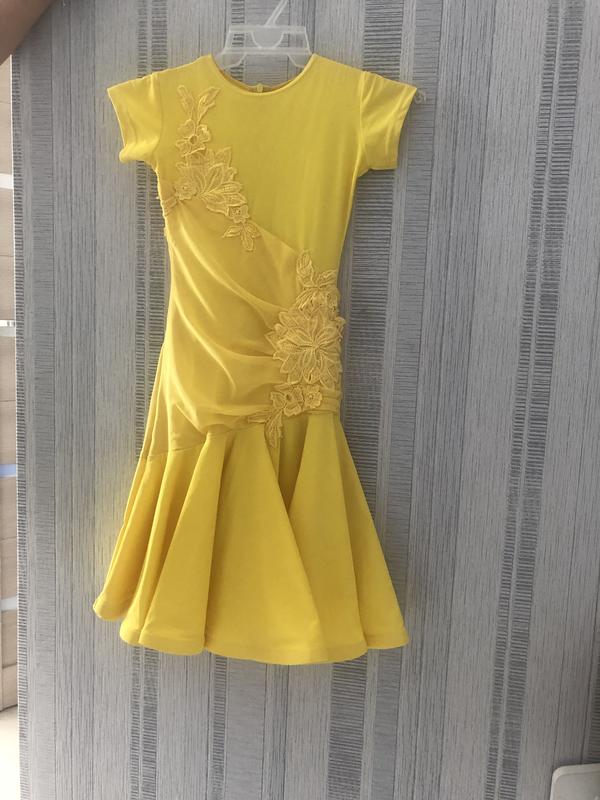 Танцювальне плаття на дівчинку віком 7-10 років. Колір - жовтий. Дуже гарно виглядає, коли дитина кружляє в танці. Довжина до коліна. Нова