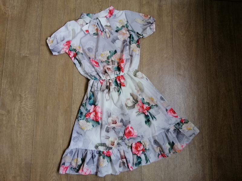 Красивое летнее платье, ткань французский софт, под юбкой тонкая трикотажная подкладка, горловина завязывается на бант 140 146 152 158 Замеры осуществлялись вручную, с одной ростовки, возможна разбежность в 1см. 140 - Длина 77, длина до пояса 35, пог 43 146 - Длина 80, длина до пояса 35, пог 45 152 - Длина 82, длина до пояса 36, пог 47 158 - Длина 85, длина до пояса 37, пог 49