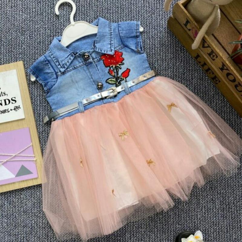 ✔ Шикарний сарафан, верх сукні - джинс, розстібнути ґудзики, пояс в комплекті. Оздоблена стразами. низ - багатошаровий фатин. підкладка - х/б, прикрашений бантиками 92 — дл 47, пояс 24 98 — дл 49, пояс 27 104 — дл 52, пояс 28 110 — дл 54, пояс 29 ** вимірювання довжини по підкладці. Без урахування фатину.