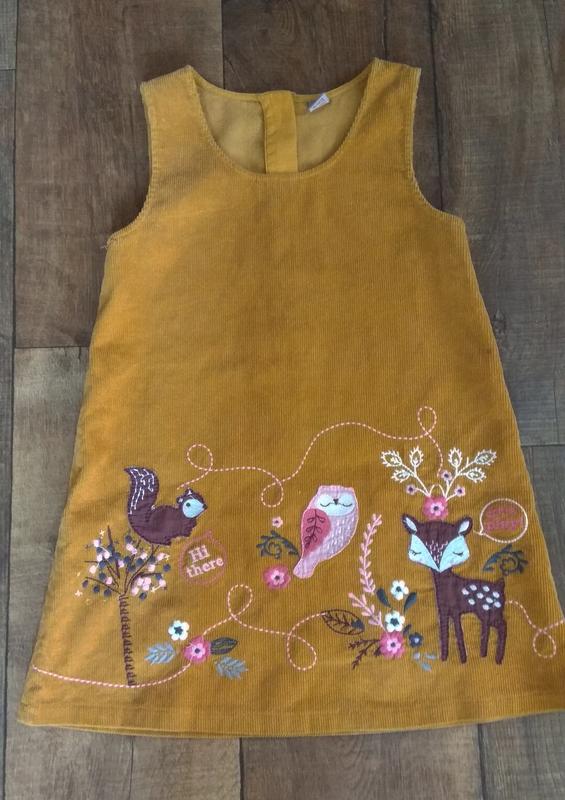 Сарафан вельветовий гірчичного кольору,100% котон на 5-6-7л 110-116-122см зростанням від TU.Останнє фото нюанс,в житті взагалі не помітно. Довжина загальна від плеча 60см Пог 33см Плечі 26см