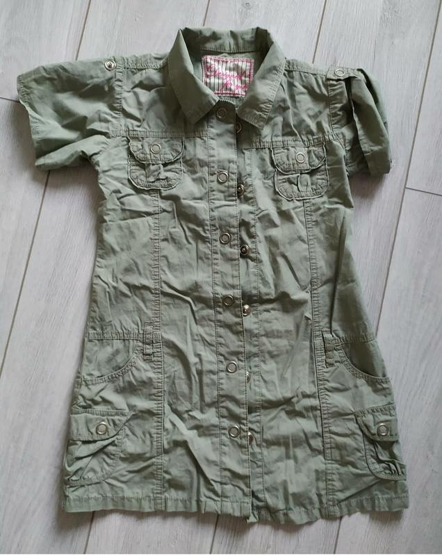 круте стильне літнє плаття фірми George сорочка халат, кольору хакі, защипається на кнопки, довжина рукава регулюється, на 6-7 років на ріст 116-122 см, стан супер.