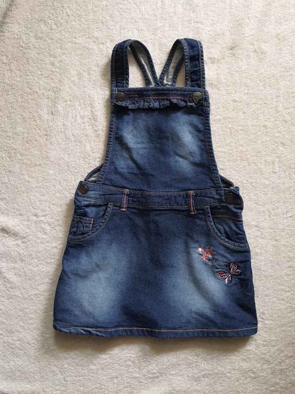 Трикотажний сарафан на 3-4 роки під джинс тканина щільна, але м'яка, схожа на двунить дл. 51 ( верх на кнопках) шр в поясі 28-30( без утяжки), дл. спідниці 25