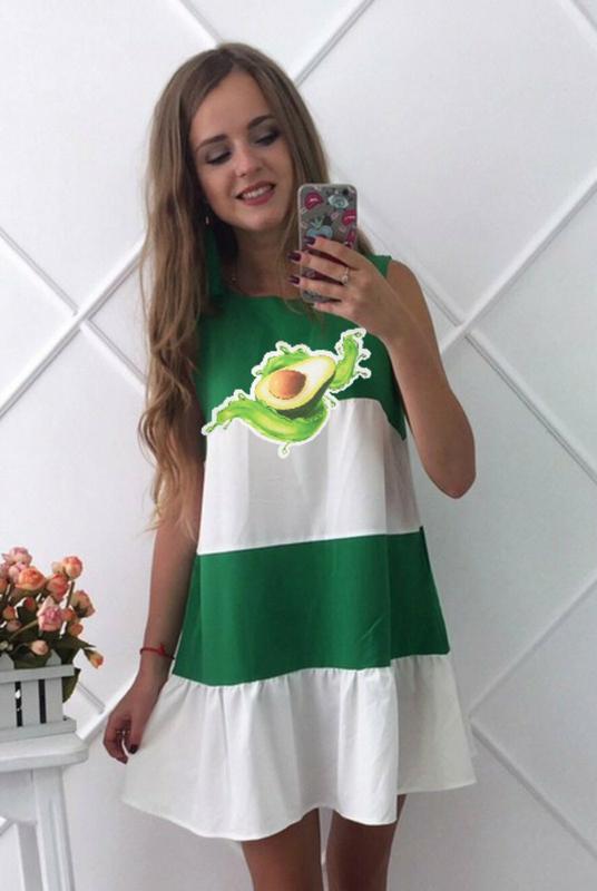 Новинка Нежное,невесомое летнее платье из французского софта,с аппликацией в виде так всем полюбившихся сочных фруктов РЕКОМЕНДУЮ!!!! АВОКАДО размеры 134-1шт 134р-длина 68 ог-35