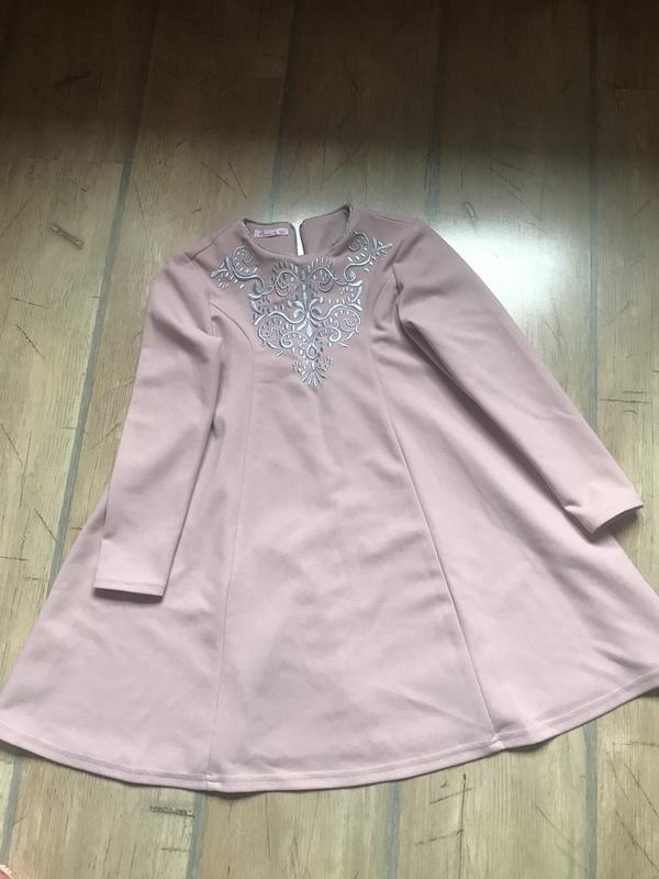 Плаття пудрового кольору на 5-7 років в хорошому стані, з оригінальною вишивкою, ззаду замочок.