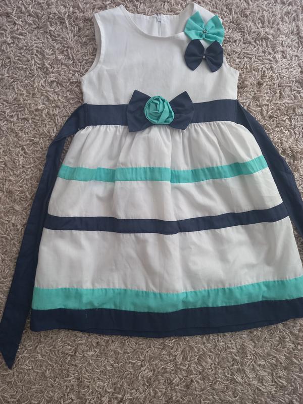 Платье для девочки, подойдет на 4-5 лет. Смотрится нарядно, ткань хлопок натуральный, есть подкладка. Длина платья - 59 см, пог - 30 си