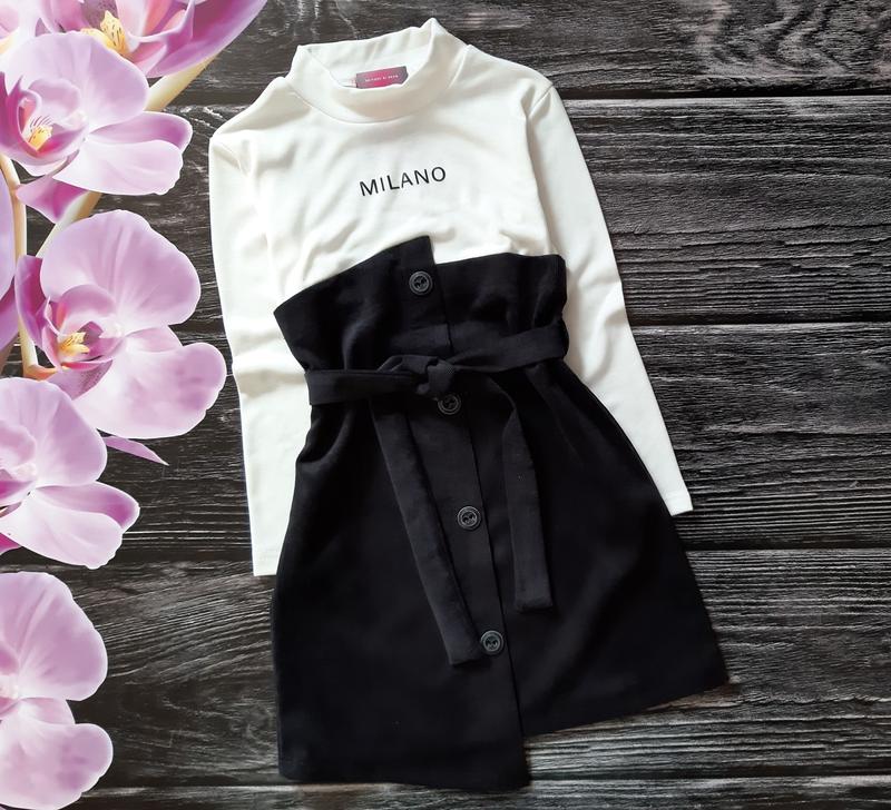 Стильное платье для девочки Цвет черный + грязная пудра ткань верх трикотаж на байке низ - вельвет ц длина/рукав/пог 134р-66/43/37 140р-70/47/38 146р-72/49/40 152р-75/52/41 158р-79/55/42
