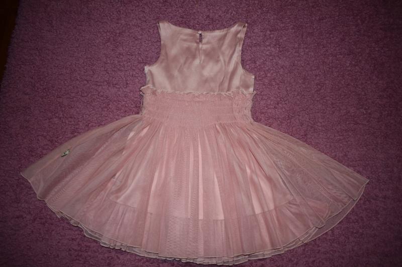 В отличном состоянии, минимальные следы носки только на верхней части платья. Шикарное качество ткани. Многослойность фатина и подкладки делает его воздушным и придаёт объем.Замеры подмышки 28 см тянется материал. Пот 28 см тоже тянется. Бедра сбодно. Длина верхней части 21 см нижней 34,5 см. Длина полностью по спинке 54 см