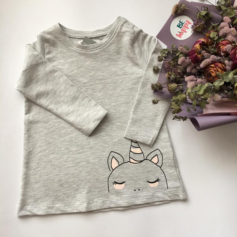Плаття під лосини сіре з єдинорогом для дівчинки