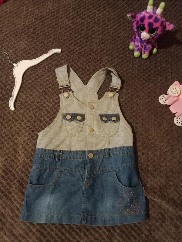 стильний сарафанчик на кнопках.сферху трикотаж,з низу джинс.на зростання 90-98 см див. ціна символічна-розвантажують шафа. НЕ секонд!