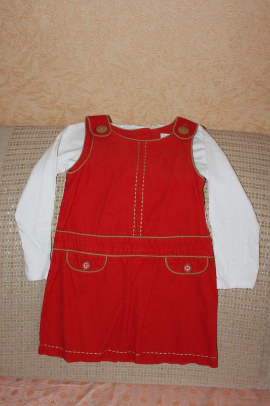 Червоний вельветовий сарафанчик дівчинку 3-4 роки фірми Next, Англія. Ззаду застібається на 3 гудзики. Дуже класно підійде в садочок. Стан відмінний - без будь-яких дефектів, як нове. 1 100% бавовна. Заміри: Довжина-55 см, ПОГ 31см.
