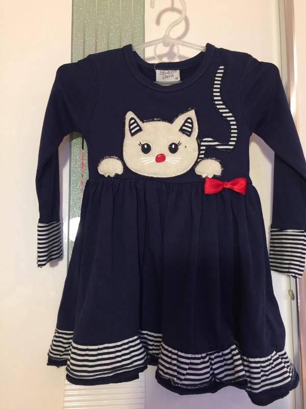 Сукня трикотажне з довгим рукавом. Аплікація котик з , хутром.. . Склад 95 % соттон. 5% еластан . . Розмір 98 ширина грудей 25см , рукав 37см, довжина 50 . . Розмір 116, ширина грудей 29см, рукав-43 довжина 60