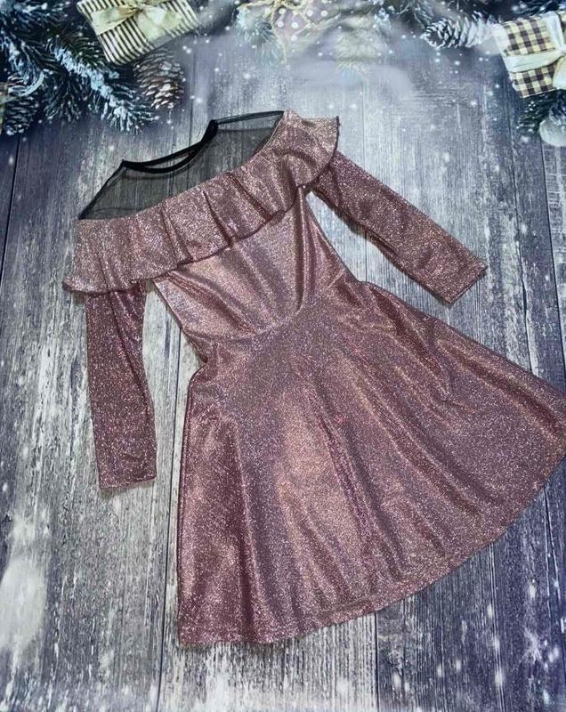 Плаття рюшка блискуче Ошатнішою❣️ ✅128 - дл 71/ рукав 43/ обг 32 ✅134 - дл 73/ рукав 45/ обг 33 ✅140 - дл 75/ рукав 47/ обг 34 ✅146 - дл 78/ рукав 49/ обг 35.каштан