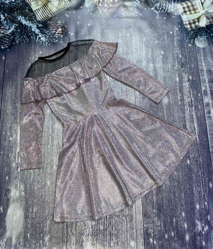 Плаття рюшка блискуче Ошатнішою❣️ ✅128 - дл 71/ рукав 43/ обг 32 ✅134 - дл 73/ рукав 45/ обг 33 ✅140 - дл 75/ рукав 47/ обг 34 ✅146 - дл 78/ рукав 49/ обг 35.каштан