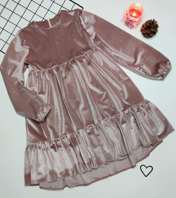 МЕГА ХИТ СЕЗОНА! 🔥Бархатное платье свободного кроя рукав фонариком по спинке молния 🔥Ваша малышка в нем будет просто неотразима! ОДНОЗНАЧНО РЕКОМЕНДУЮ! размер/🔥длина по переду/пог/рукав 140/🔥70/35/50-1шт 146/🔥75/36/53-2шт 152/🔥79/38/56-2шт 158/🔥81/40/58-2шт