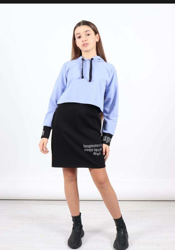 Стильний комплект для дівчинки підлітка. В комплект входить сарафан і вкорочене худі. Костюм пошитий з турецької двуніткі, тканина відмінно тягнеться. В бокових швах сарафана є функціональні кишені. Худі має капюшон, який стягується акуратним шнурком, рукав на широкому манжеті. Розмір: 140,152,158,164 зростання Матеріал: турецька двунітка 140рост - Сарафан: довжина-72см, напівобхват грудей-36см, напівобхват стегон-35см; Худі: довжина-33см, рукав від горловини-57см, напівобхват грудей-41см 152рост - Сарафан: довжина-79 см, напівобхват грудей-39див, напівобхват стегон-38см; Худі: довжина-36см, рукав від горловини-64см, напівобхват грудей-44см 158рост - Сарафан: довжина-83см, напівобхват грудей-41см, напівобхват стегон-40см; Худі: довжина-38см, рукав від горловини-67см, напівобхват грудей-46см 164рост - Сарафан: довжина-87см, напівобхват грудей-43 см, напівобхват стегон-43см; Худі: довжина-41см, рукав від горловини-70см, напівобхват грудей-48см апельсинка