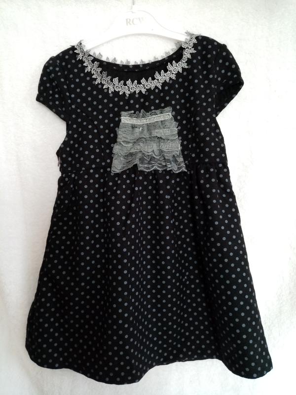 Тепленьке дитяче плаття - сарафанчик, чорного кольору в горошок Довжина 58 см Приблизний вік 3-5 роки