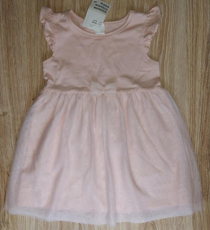 Нарядное платье, мягкий хлопок, на фатине золотые блёстки. Размер по бирке 92-104 и 1.5-4г. У дочки на фото рост 84 Новое