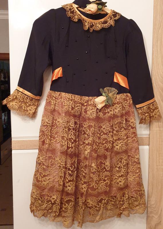 Платье нарядное с длинным рукавом + повязка на голову для девочки ПОГ 30см ПОТ 29см длина рукава 37см + 7см. манжет длина по спинке 85см.