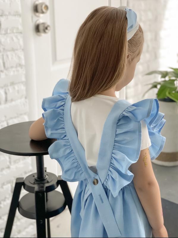 Сарафан від дизайнерського бренду, виконаний з італійського льону в 2-х кольорах: небесний/ червоний , в 2-х різних моделях - дивіться оголошення. Сарафан регулюється під зміна росту дитини з часом ! Можна носити під футболочку і без!