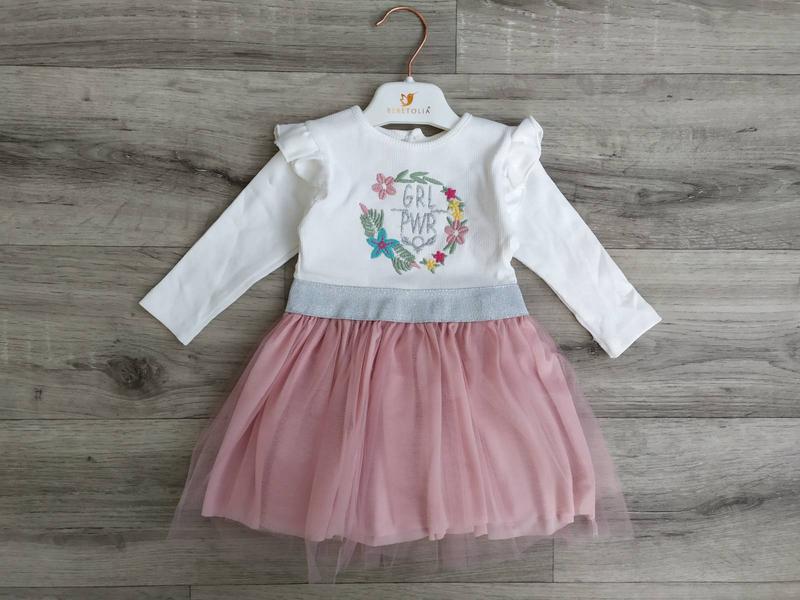 Платье Bebetolia "GRL PWR",пудра 👧👩 Размеры:6/9,9/12 месяцев Ткань Двунить, фатин Страна производитель Турция🇹🇷 Сезон демисезонный Рукав длинный рукав Производитель Bebetolia