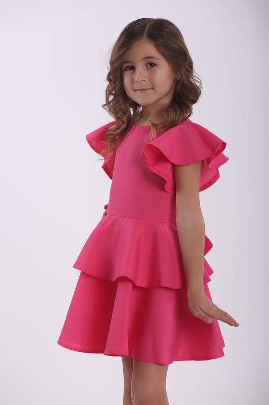Платье с воланами не оставит равнодушными ни девочек, ни их мам. Сзади молния, поясок завязывается сзади на бант. Очень практичная ткань габардин легко стирается, практически не мнется!! Цвет: розовый Ткань: 100% ПЭ Производство: Украина, ТМ Ласточка. Качество пошива хорошее. Отправка: Укрпочта, Новая почта, самовывоз покупателем Обмен, возврат в течение 14 дней. Доставку оплачивает покупатель Оплата: 100% на карту Замеры: Размер 104: длина до талии 26 см; длина платья 55 см; ПОГ 28 см; ПОТ 26 см. Размер 110: длина до талии 27 см; длина платья 58 см; ПОГ 29 см; ПОТ 27 см. Размер 116: длина до талии 28 см; длина платья 58 см; ПОГ 30 см; ПОТ 28 см. Размер 122: длина до талии 29 см; длина платья 62 см; ПОГ 31 см; ПОТ 30 см. Размер 128: длина до талии 30 см; длина платья 65 см; ПОГ 32 см; ПОТ 31 см. Размер 134: длина до талии 31 см; длина платья 68 см; ПОГ 33 см; ПОТ 32 см. Размер 140: длина до талии 32 см; длина платья 72 см; ПОГ 35 см; ПОТ 33 см.