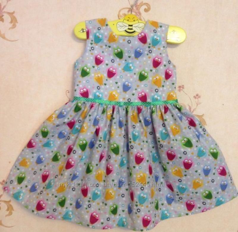 Продам нове, легке літнє плаття Веселі совушки 98-104 рр. Заміри ПОГ 30 см, довжина 57 см, тканина бавовна, верх сукні на хб підкладці,ззаду потайна блискавка.