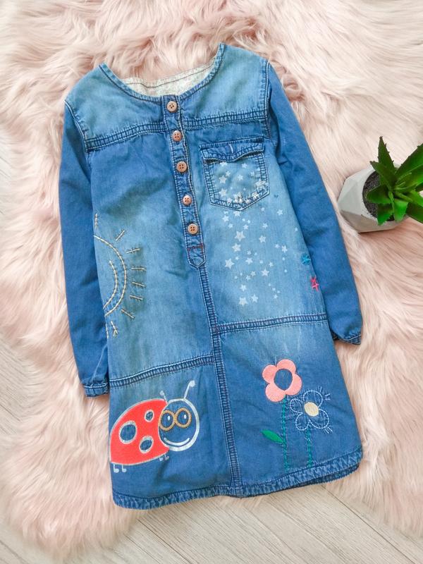 Легкое джинсовое платье Next в идеальном состоянии. Размер указан 2-3 на рост 98 см, но большемерит. Рукав можно носить с подворотом. Замеры: Длина от плеча до низа 55 см Ширина под ручками 31 см Рукав от плеча без подворота 34-35 см.