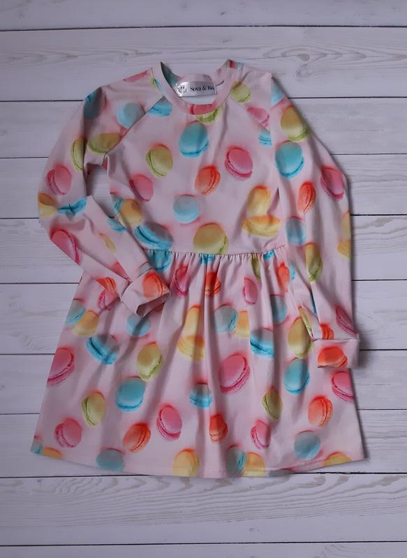 Дитяче плаття р.-122. Тканина трикотаж 95% бавовна, 5% еластан. Рукав реглан зі складками та манжетом, довжина рукава від горловини 51 див. Довжина плаття 66 див. Півобхват талії 32 див.
