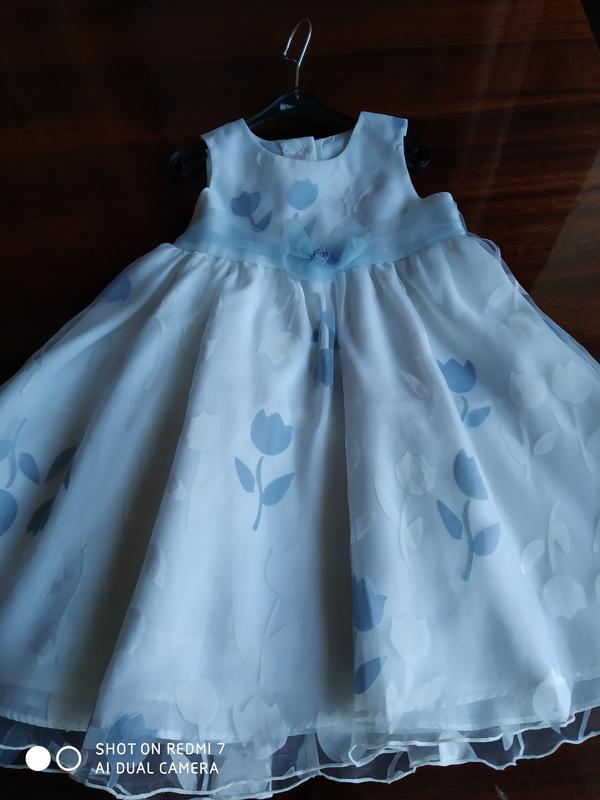Плаття фірми La Princess на вік 2 роки, зріст 92 см, на спинці гудзики, пояс завязується і підкреслює талію. Заміри: півобхват грудей 28 см від плеча до талії 18,5 см від талії до низу 40 см загальна довжина 58,5 см