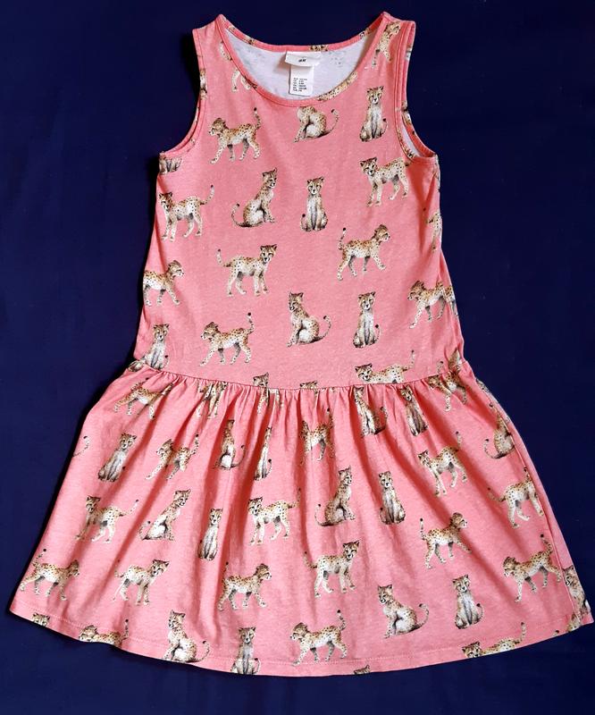 Чарівне літній трикотажне плаття леопарди на рожевому H&M (Швеція на 6-8 років ЗАМІРИ довжина від плеча до стегон/низу 37/66см, ПОГ 30см