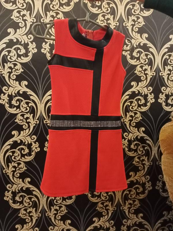 Сукні коралового кольору на дівчинку 6-9 років. Довжина від плеча до низу:70 см Обхват талії: 60 см Тканина щільна, вставки з шкірзам, стрази. Торг доречний.