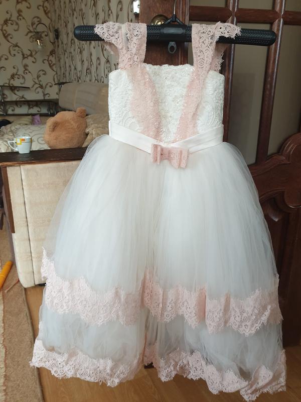 Красивенное платье с фатиновой юбкой, верх - гипюр. сзади шнуровка.