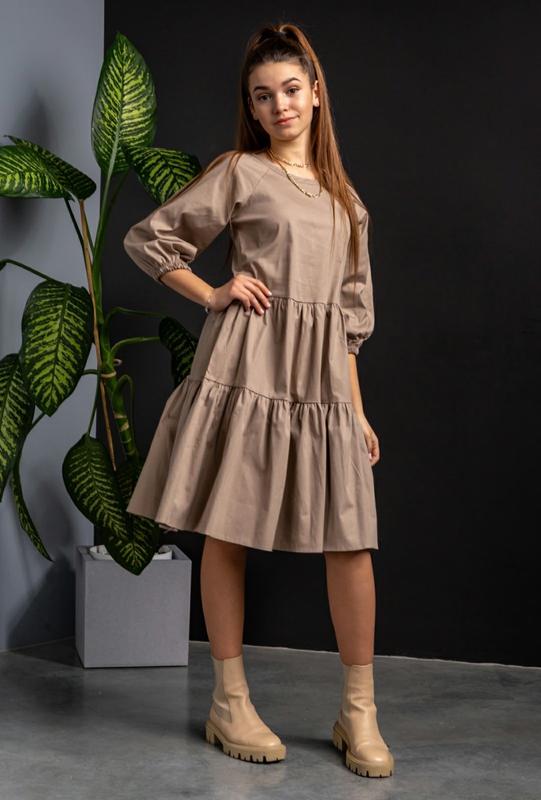 🌷Хітове плаття св беж тканина стреч коттон рукав ліхтариком 3/4 🌷пишна спідниця по спинці потайна блискавка РЕКОМЕНДУЮ!!! розмір/🌷довжина/пог/рукав від горловини 140/🌷82/36/43-1шт 152/🌷89/38/47-1шт