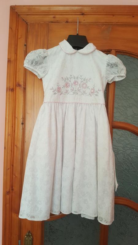 Біленьке платтячко з простої тканини-в хорошому стані.Бракує одного камінця.