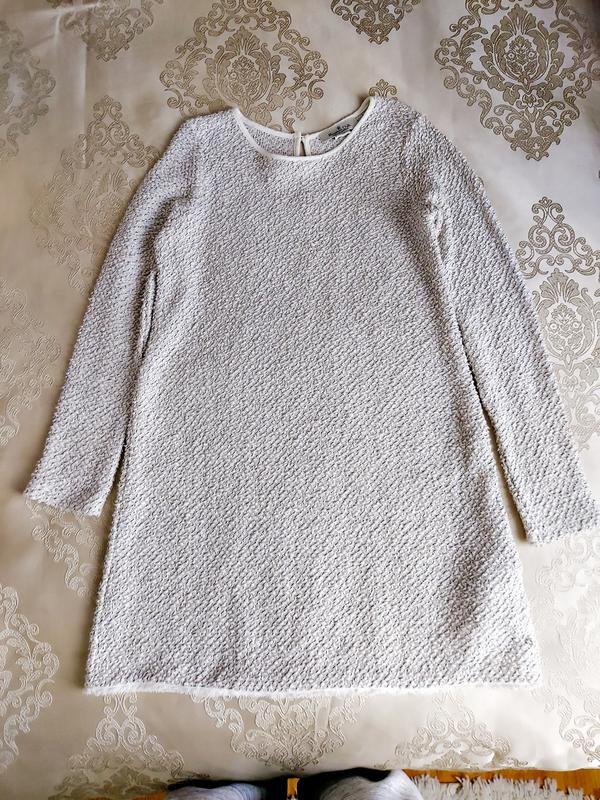 Дуже красиве нарядне плаття бежевого кольору з сріблястим люрексом. Тканина м'яка і добре тягнеться. Стан нового, одягнене один раз на свято. Купували на офіційному сайті. Заміри на фото.